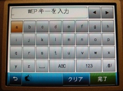 無線LANの設定は、タッチパネルに表示される手順に沿って行なうだけで完了し、パスワード設定がされたネットワークを選択した場合、無線LANにかけられているWEP/WPAといった規格を認識し、それに合ったソフトウェアキーボードが表示されるようになっています。