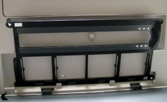 カバーの裏の原稿押さえを外すと、スライド/ネガフィルム ホルダーが現れます。カバー裏にスライド/ネガフィルム ホルダーが装着されているのは、国産インクジェット複合機では定番ですね。