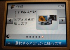この「ビデオフレームプリント」作成機能は、Motion-JPEG Quicktime(.mov)、Motion-JPEG AVI(.avi)、MPEG-1(.mpg、.mpe、.mpeg)のファイルに対応していて、タッチスクリーンで再生(音声も出ます)しながらフレームを選択し、そのフレームを印刷することが出来ます。