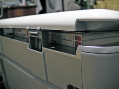 カバーは、厚物のスキャンがしやすいように、カバーが2.5cm持ちあがる仕組みが採用されています。私が所有しているセイコーエプソンのインクジェット複合機「Colorio PM-A900」もカバーが持ちあがり、そのまま外すことが出来るのですが、簡単に外れてしまうのです。この、HP Photosmart C8180は、カバーを垂直に立てないとカバーが外れないように仕掛けがされています。