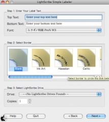 ヒューレット・パッカードが開発したドライブを用いてレーザーでレーベル面に描画可能な技術「LightScribe」(レーベルフラッシュとは異なる規格) 対応のCD/DVD作成を行なう事ができます。