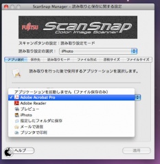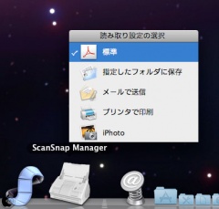 Dockに表示されているScanSnap Managerからも読取ったデータを渡すアプリケーションを指定することができるのですが、予め用意された5つの中からしか選ぶ事ができません。