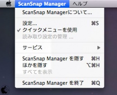 ちょっと戸惑うのは、ScanSnap ManagerのFinderメニューで、クイックメニューが選択されていると、アプリ選択タブの選択が出来なくなります。
