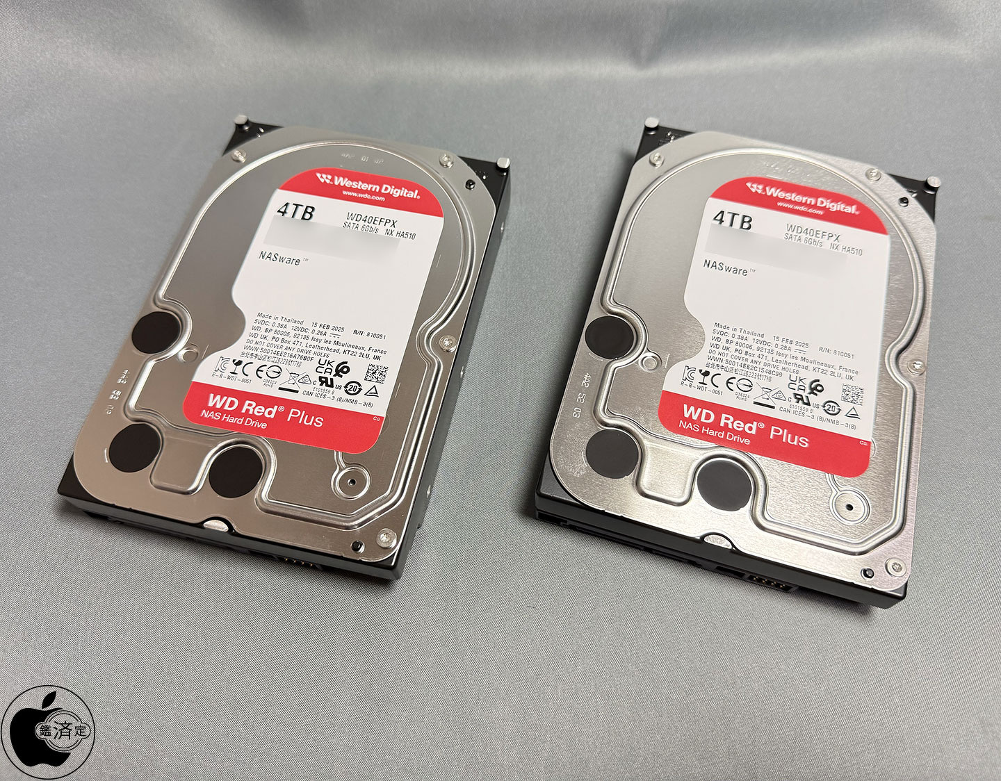 内蔵するHDDとして、Western Digitalのパワーユーザーや中規模ビジネスのNAS環境のワークロードに対応するように作られた「WD Red Plus Internal NAS HDD 3.5" - 4 TB」を2個用意しました。