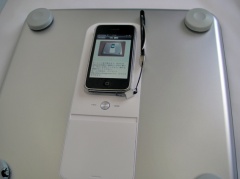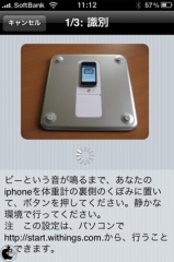 アカウントが取得出来たら、次に、WiFi Body Scaleの裏面にiPhone 3GSを設置し、WiScaleアプリで体重計設定を選択します。