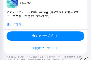 今回のアップデートのように、ソフトウェアアップデートでは、新機能やさまざまな改善が追加される一方で、パフォーマンスやバッテリー駆動時間に影響する場合があります。詳しくは以下のWebサイトをご覧ください:
