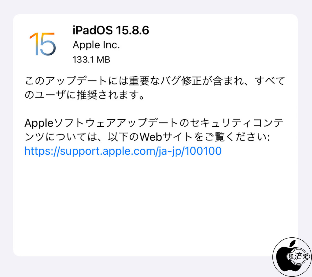 Apple、重要なバグを修正した「iPadOS 15.8.6」を配布開始