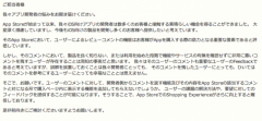 ユーザーによるレビューコメントの機能はお客様がAppを購入する際の助力となる重要な要素であると評価している反面、そのコメントにおいて、製品を良く知らない、または利用を始めた段階で機能やサービスの有無を確認せずに非常に悪いコメントを残すユーザーが存在することは周知の事実で、誤解を放置しておくことは我々開発者にとっても、 そのコメントを残したユーザーにとっても、ひいてはそのコメントを参考にするユーザーにとっても幸福なこととは思えないとし、ユーザーのコメントに対して、開発者側からコメントを返す機能及びその内容をApp Storeの該当するコメントと対になる形で購入ページ内に表示する機能を追加してもらえないかといった提案を掲載しています。