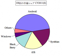 OS別シェアではAndroid、Symbian、iOSの順ですが、NokiaがWindows Phone採用を表明したことでシェアを落し始めていると分析されています。