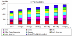 この調査結果で重要なのは「エリア別の出荷動向」で、中国やインドでの需要増が市場全体を底上げしていて、 とりわけ、ベトナムやインドネシアなどの東南アジア諸国の市場成長も顕著になってているそうです。