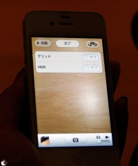 カメラに、これまで「HDR」ボタンだった部分は「オプション」になって、「グリッド」「HDR」の切り替えをするようになっています。