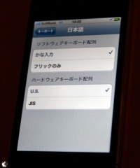 iOS 4ではテンキーとU.S.のみですが、iOS 5では、ソフトウェアキーボード配列「かな入力/フリックのみ」、ハードウェアキーボード配列「U.S./JIS」が選択出来るようになっています。