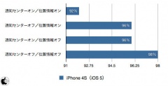 iPhone 4Sの通知センターと位置情報のバッテリー消費量をチェック