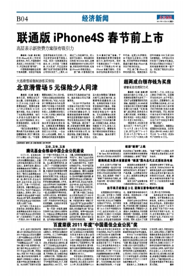 北京晨報:チャイナ・ユニコム、iPhone 4Sを旧正月前に発売するとコメント