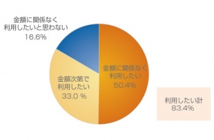古いスマートフォンを下取りしてくれるサービスの利用意向については、「金額に関係なく利用したい」と回答した人は50%、「金額次第で利用したい」と回答した人は33%、利用したいと回答した人は合わせて83%に達し、8割以上の人がスマートフォンの下取りサービスを利用したいと回答しているそうです。