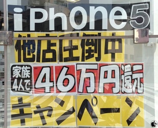 ソフトバンクモバイルショップの店頭に「iPhone 5購入で、家族4人で最大46万円還元キャンペーン」と貼紙がされていたので、いったいどんな条件なのか聞いてみました。