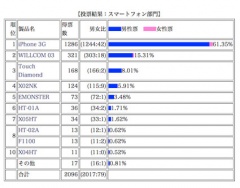 投票数は2096票で、うちiPhone 3Gが1286票を獲得し、2位のWILLCOM 03の得票数に対して約4倍の得票を得ています。