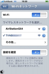 TV&バッテリーは、ワンセグ放送の信号をWi-Fi無線LAN経由で転送する仕組みのため、iPhone 3GnoWi-Fi無線ネットワークをTV&バッテリーに切換える必要があります。
