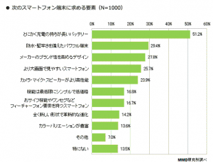 また、別途調査しているAndroid端末シリーズの所有者が求める「充電の持ち」と「防水堅牢さ」は1位、2位と同じで高い要望だが、iPhoneにおいては「iPhoneブランド」であることが人気であることが分かったと分析しています。
