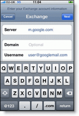 設定の方法は、設定>メール/連作先/カレンダー>アカウントを追加から「Microsoft Exchange」で、ドメイン名は空白、ユーザーネームにGmailアカウント&パスワード、サーバー名 m.google.com と設定し、Syncボタンを押すと同期可能になります。