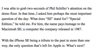 Fortuneが、Apple Special Event March 2016のハンズオンにおいて、Appleのワールドワイドマーケティング担当Phil Schiller氏に、iPhone SEのSEは何を表しているのかと質問したところ「Special Edition」と答えたそうです。