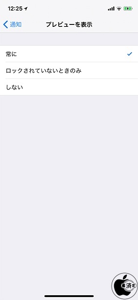 Touch ID搭載iPhoneでも通知のプレビューを表示しないようにする場合「ロックされていないときのみ」を選択します。