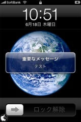 このメッセージは、iPhone 3Gのロック状態にある画面に表示されます。