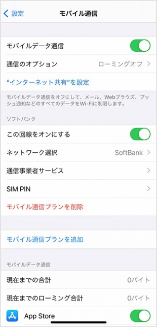 ダウンロードが完了したら、ホーム画面の「設定」アプリを開き、「モバイル通信」をタップします。