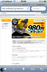 ソフトバンクモバイルが、福岡ソフトバンクホークスの公式戦A指定席が、ソフトバンクモバイルユーザー限定で980円で購入出来る「ソフトバンクモバイル980円チケットが、2010年3月5日(金)10時より、iPhone 3G/3GSからも購入可能になると発表しています。