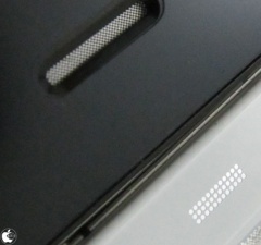 iPhone 4ブラックでは、ガラス面に明るさを感じるための未塗装部分があり、それは組み付けた時に差が確認出来ないのですが、iPhone 4では、ガラス面に網目処理による未塗装部分があり、これが、はっきりと確認出来るようです。