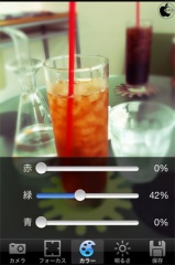 カラータブを選択すると、赤、緑、青のコントラストを調整することが出来ます。
