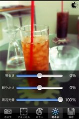 明るさタブを選択すると、明るさ、鮮やかさ、周辺光量を調整することが出来ます。