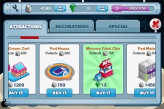 左下のカートをタップして、惑星に休憩所を建てたり、アトラクションを用意したりして、旅行客の満足度を高めながら、収益(石)を上げます。
