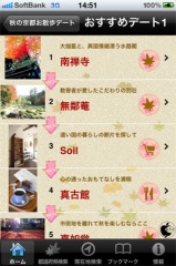 秋の京都お散歩デートをタップすると、おすすめの紅葉デート順を見る事が出来るようになっています。