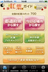 Yahoo! Japan、紅葉情報アプリ「紅葉ガイド2010〜全国700以上の紅葉スポット情報〜」をリリース