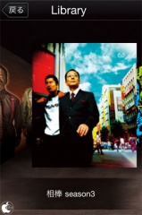 Libraryをタップすると、放送開始から10周年を迎える2010年に発売されるDVD「相棒 season8」までのシリーズ情報を見る事が出来ます。