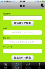 Serchでは、電話番号検索、地域、カテゴリといった指定条件検索も出来るようになっています。