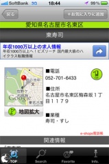 お店情報をタップすると、電話番号、地図、業種などを確認することが出来ます。