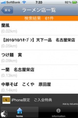 ただ、ラーメン店が調べられるだけで、ラーメン店のランク表示などはないので、実用度は低いかもしれません。