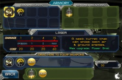 ステージクリアによって、新しく利用可能になる武器は、ARMORYで、武器パレットに配置することで、次のステージから利用可能になります。