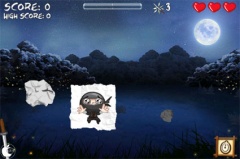 ゲームをスタートすると、丸まった紙が飛んできて、紙が広がると忍者が現れます。