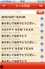 トップページのテンプレートから作成をタップすると、テンプレート文が一覧表示され、本文をその中から選んで作成することも出来ます。