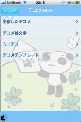 トップのデコメBOXをタップすると、受信したデコメ素材を再利用することが出来ます。