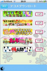 トップページからデコメダウンロードを選択すると、アプリ内課金によって、デコメ素材を追加することが出来ます。