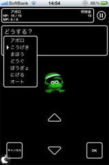 また、メニューボタンをタップして、付近を調べたり、装備を変更したり出来ます。