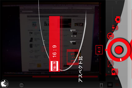 画面右側に各種設定項目が用意されていて、指でなぞると、Mac OS XのDockのように拡大/縮小表示されます。