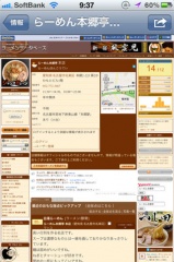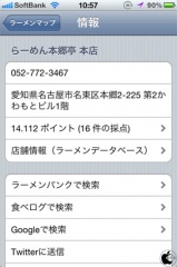店舗情報をタップすると、ラーメンデータベースサイトにある該当店舗情報が表示されるようになっています。