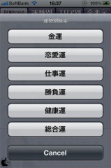 運勢別をタップすると、運勢別ボタンが表示され、見たいボタンをタップすると、その運勢にあったパワースポットがピンで表示されるようになっています。