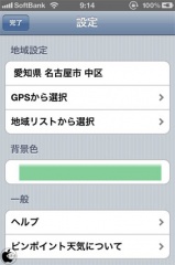 設定アイコンから、現在地情報を元に地域設定を行います。