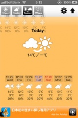 島津ビジネスシステムズが、iPhone/iPod touch用天気予報アプリ「ピンポイント天気」を、App Storeにて無料配付を開始していたので試してみました。